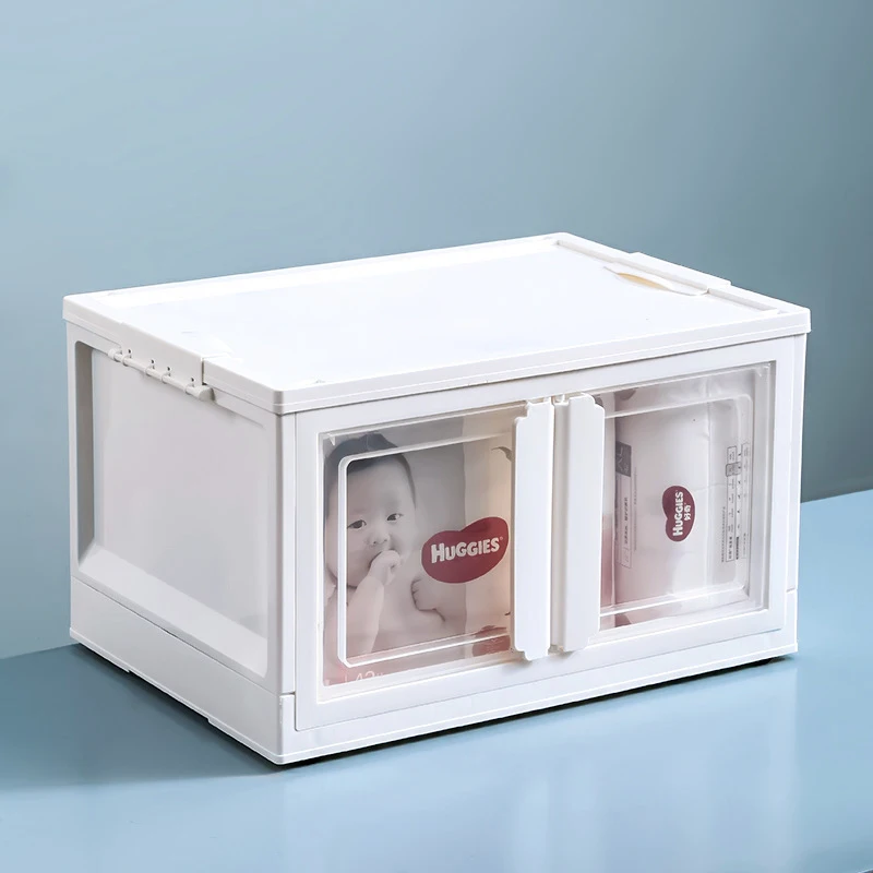 Double-Door Collapsible Storage Organizer Box with Wheels